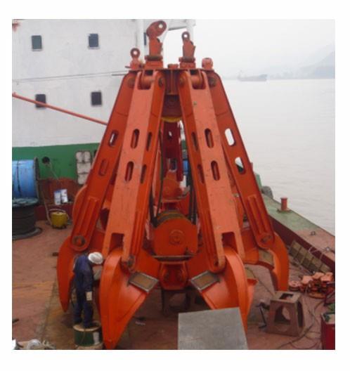 The remote control grab is a novel grab which is used to control the opening of a single cable crane through a wireless remote control transmitter. It does not need external energy. It can automatically close with the lifting of the hook on the pile, and can automatically open at any position in the air and stop at any time. There is a storage battery inside the grab, which controls the opening and closing of the grab by controlling the opening and closing of the solenoid valve. The grab does not need any other power supply, which is green. As a new invention of mechatronics, this grab is very popular with users. Its birth rewrites the history of low efficiency of single rope grab in the lifting and transportation industry. The remote control grab is generally composed of upper bearing beam assembly, sliding seat assembly, lower bearing beam assembly, bucket body, strut and oil cylinder. Among them, there are pulley blocks connected with the crane in the upper bearing beam assembly and sliding seat assembly, and the cylinder and piston rod of the oil cylinder are respectively connected with the lower bearing beam assembly and sliding seat assembly. The sliding seat can slide up and down under the action of the crane, driving the lower bearing beam to lift together, thus driving the grab to close; Through the remote control, the lower bearing beam and the sliding seat are separated, so as to control the opening of the grab.